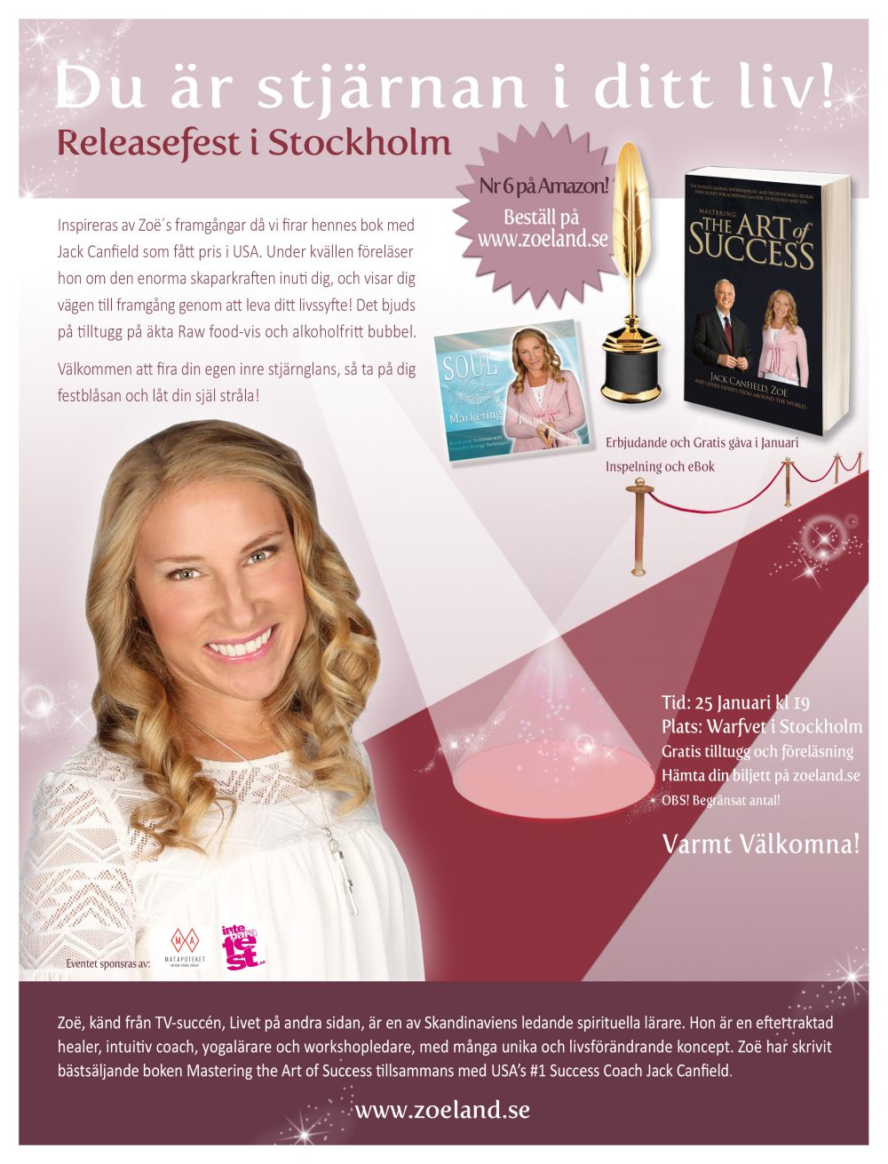 Zoë bjuder in till releasefest i Stockholm för att fira hennes och Jack Canfield’s succébok “Mastering the Art of Success” som blivit bästsäljare i USA med plats nr 6 på Amazon!